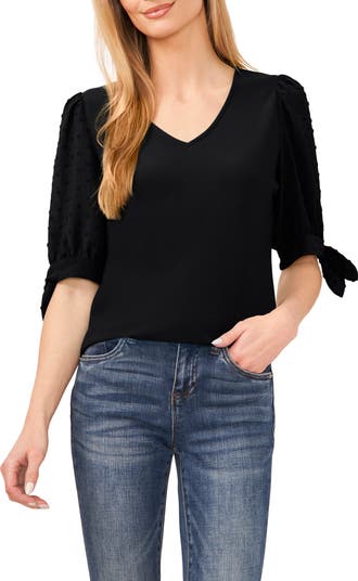 Dainty ties tether the clip-dot sleeves of this smooth crepe top that's ideal from day to night.