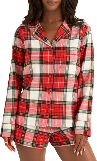 This festive bow fair isle printed PJ set is so soft and comfy, you'll never want to take it off. The long-sleeved button-down top comes with matching elastic waist shorts.