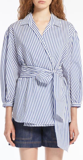 Ceci Stripe Tie Waist Cotton & Silk Shirt