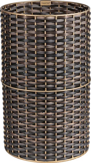 This slim wastebasket is the perfect shape to tuck into a small bathroom, bedroom or office. Perfect for indoor spaces, it's made from natural wicker woven onto a steel frame. Add color and texture to your space with the modern look of this versatile trash can.