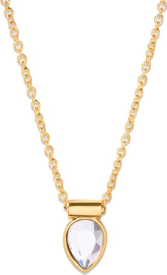 A bezel-set teardrop crystal lights up this gleaming chain necklace plated in 14-karat gold.