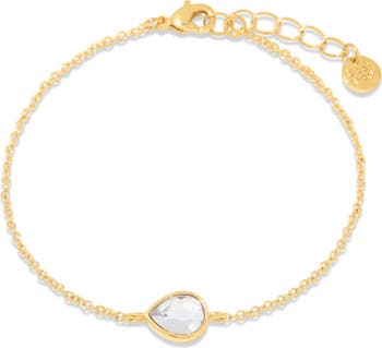 A bezel-set, faceted crystal lights up this gleaming chain bracelet plated in 14-karat gold.