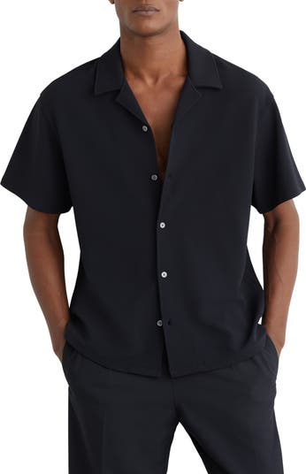 A finely textured fabric cut for an eased-up fit is ready to welcome warm breezes and sunny skies when you build your look around this camp shirt.