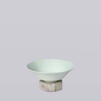 Cobalt Guild offers an assortment of blue and white porcelain vessels from the antiques markets of Jingdezhen, a town long distinguished by imperial patronage. This piece is a hand made conical bowl with a flat interior with an incised peony motif in a Song Dynasty minimalist style, 8 1/2" x 2 3/4"
