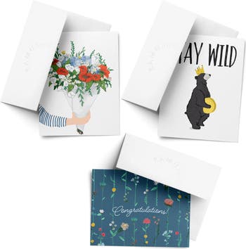 Celebration/Graduation Assorted Greeting Card Pack (3ct) "Bear, Flowers, Bouquet"