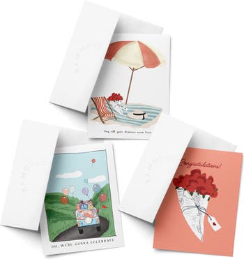 Celebration/Graduation Assorted Greeting Card Pack (3ct) "Celebrate, Flowers, Beach"