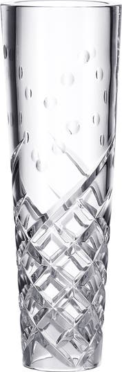 Light plays and dances across the delicate, shimmering olive cuts and deep, striking karo cuts of this vase that adds a touch of elegance to your home's refined decor.