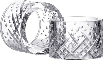 Light plays and dances across the delicate, shimmering olive cuts and deep, striking karo cuts of these napkin rings that set your special-occasion table with an elegant touch.