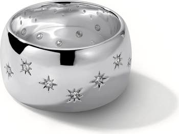 Crystal-centered stars scatter across the curves of this wide band that adds celestial sparkle to any stack.