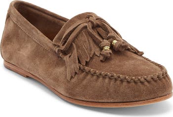 Bead-tipped laces and a fringed kiltie vamp emphasize the beautifully boho aesthetic of this moc-toe driving loafer fitted with a comfortably cushioned footbed.