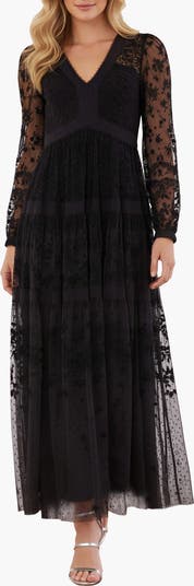 This gown has been intricately designed with rich embroidery inspired by vintage lace, featuring delicate floral motifs and ribbon bows throughout. Crafted with pretty lace trims for signature Needle & Thread detailing, and delicately constructed with a textured tulle fabric base. Featuring a V-shaped neckline and a new, ultra-flattering silhouette. Make the ultimate statement in the Celestia.