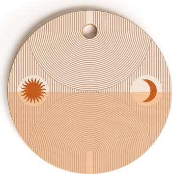 Decorate your kitchen with this round cutting board featuring a vibrant, satin-finished print backed by a matte bamboo surface. A one-inch hole allows you to easily hang and display the printed side while not in use, while the reverse is finished with food-grade cutting board oil for functional utility.