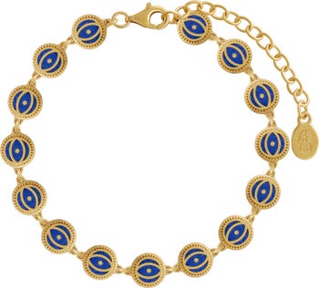Awaken wisdom and inner clarity with the Celestial Insight Lapis Evil Eye Bracelet, a radiant harmony of intuition and protection. The rich blue lapis inlay mirrors the vastness of the night sky, inspiring truth, creativity, and calm focus. At its heart, the Evil Eye charm stands as a guardian of light, shielding you from negativity while attracting peace and spiritual awareness. Crafted from 18K gold-plated brass and silver, this bracelet blends celestial beauty with soulful intent. Handcrafted in Thailand, it embodies the grace of mindful strength and quiet confidence.