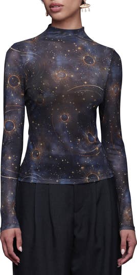A Renaissance-inspired celestial pattern makes a stunning statement on this sleek and stretchy long-sleeve shirt that's ready to elevate your everyday style.
