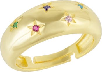 Spero London Celestial Star Sterling Silver Dome Ring With Stones, Alternate, color, Gold