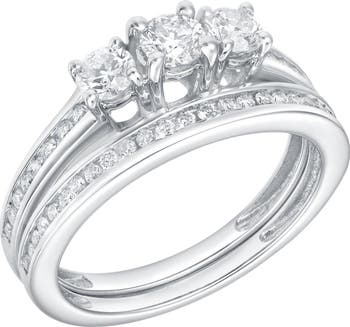 Designed as a two piece set the Celestyn Duo features a combined 0.9 carats of natural diamonds in polished 14k gold. The statement ring showcases a brilliant three stone top with a diamond accented split shank while the coordinating band adds a sleek layer of sparkle for a perfectly stacked look. Wear them together or style separately for versatile shine across milestones special moments and everyday elegance. Crafted with ethically sourced natural diamonds. Diamond carat weight may vary up to 0.05 carats from the stated weight.