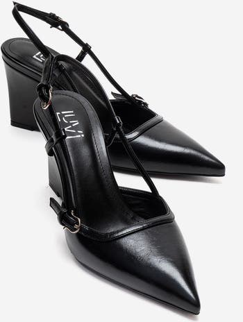A refined pointed-toe silhouette that balances sculptural block heel support with elegant strap details for enduring sophistication