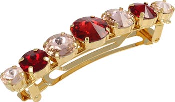 Glimmering Swarovski crystals line the top of this easy barrette that holds your hair in place securely.