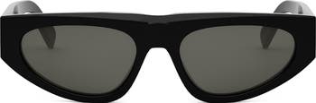 Smoky lenses bring essential coverage to sleek Italian-made sunglasses featuring an angular silhouette and signature branding at the temples.