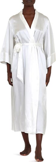 Elevate your at-home time by luxuriating in the retro-glam style of this supple silk robe with flared three-quarter sleeves.