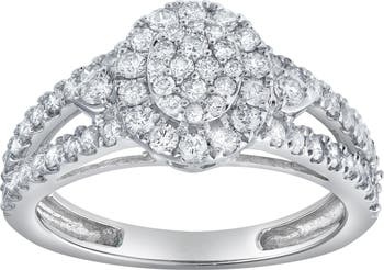 Radiant and unforgettable the Celoria ring features 1.00 carat of natural diamonds set in polished 10K gold. An oval cluster center is framed by a shimmering halo to create a larger look with brilliant dimension. The split shank band is lined with pavé diamonds for extra sparkle from every angle. Perfect for an engagement inspired look or a bold statement it delivers timeless glamour with modern shine. Crafted with ethically sourced natural diamonds. Diamond carat weight may vary up to 0.05 carats from the stated weight.