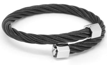 Charriol's iconic Celtic® bypass style bangle gets a contemporary update with a hexagonal endcap punctuated by a screw. Available in stainless steel and black PVD.