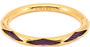 The Celtic Dream collection draws from the tradition of openwork design - a signature innovation of early Celtic metalworkers. Dreams offer a glimpse of the subconscious mind, and so, the rings, earrings, and bangle in this set give a peek at our signature cable through the solid exterior casing. The cable is offered in stainless steel or Charriol's signature plum, each in striking contrast to yellow gold PVD.