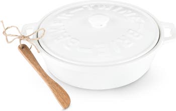 When it comes to guest-pleasing hors d'oeuvres, nothing beats baked brie. Our stoneware baker makes preparing this delectable dish easier than ever: simply top with a drizzle of honey or spread of your favorite jam, bake for 15 minutes in a 350-degree oven, & enjoy!