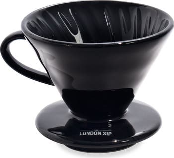 At the London Sip, our mission is to provide you with the highest quality tools to produce cafe-quality coffee and tea from the comfort of your own home. We have designed the perfect ceramic pour-over coffee dripper (manual coffee brewer) to allow you to enjoy great pour-over coffee at home or on the go. The dripper is crafted from quality ceramic that is resistant to thermal shock and retains heat to prevent temperature loss during the brewing process. The ceramic construction will not impart any flavors into your coffee like other materials can for a great tasting cup of coffee every time. The coffee dripper is extremely easy to use, does not require a specialty filter, and clean-up is a snap. The large base of the dripper easily sits on your cup or to-go mug; place the filter in the dripper, add coffee and pour hot water over the grounds. When the brewing process is complete you simply throw away the filter, rinse out the dripper and enjoy your coffee. The London Sip pour-over ceramic coffee dripper is a perfect addition to your morning coffee routine allowing you to brew a great pour over coffee directly into your cup