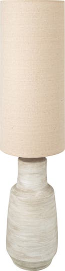 Illuminate the living space with this sand ceramic floor lamp with an elegant and charming design. This floor lamp showcases a ceramic base that has a sand color and a textured surface that creates a natural and cozy look. The base is topped with a linen shade that diffuses the light softly and evenly, creating a comfortable and inviting ambiance. The shade is made of linen, which is a natural and durable fabric. This floor lamp is suitable for any room that needs some sophistication and warmth, such as the living room, bedroom, office, or any other area. It can also be an excellent gift for anyone who loves coastal, bohemian, transitional, or contemporary design. This floor lamp requires one 100W bulb (not included) and is conveniently equipped with an in-line switch. It measures 11 inches in diameter and 45 inches in height, and the cord length is 8 feet. Add this sand ceramic floor lamp to the home and enjoy its beauty and functionality.
