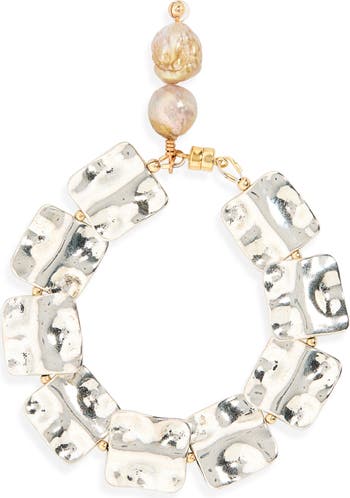 Thoughtfully, elegantly handcrafted in the brand's NYC studio, this bracelet catches attention and invites contemplation in a gleaming design finished with a single, luminous freshwater pearl charm.