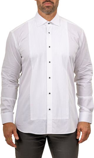 Neat pleats define a crisp cotton tuxedo shirt cut from a moisture-wicking, four-way stretch fabric you'll be thankful for when you're out owning the dance floor.