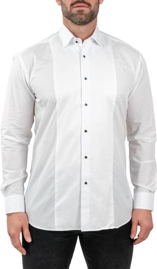 This button-up is a modern essential that transitions from day to night with tonal panels framing the placket. It's tailored from breathable, dotted cotton in a contemporary fit that accentuates the body while leaving room for comfortable movement.