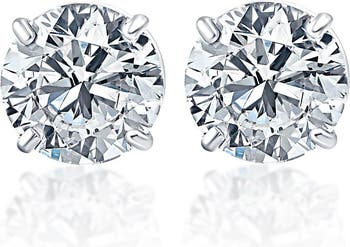 Womens matching pair of studs features two round brilliant cut genuine EX3 lab grown diamonds. Both diamonds are prong set in solid 14k white gold with push backs. Earrings are IGI certified, certificate is included.