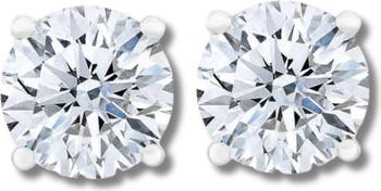 This stunning sparkly matching pair of womens earrings features two round brilliant cut genuine EX3 lab grown diamonds. The diamonds are four prong set in solid white or yellow gold basket style mountings with screw back settings.