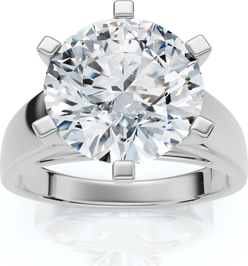 Womens ring features a larger 3 ct round brilliant cut genuine lab grown round cut diamond. The diamond is six prong set in solid high polished 14k white gold mounting.