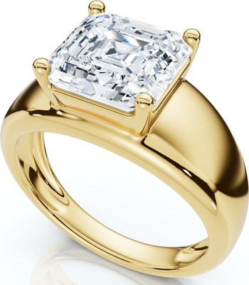 The Certified 3Ct Asscher Cut Solitaire Cigar Band offers a perfect blend of modern minimalism and comfortable luxury. At its heart lies a spectacular 3-carat lab-grown Asscher cut diamond, celebrated for its clean lines and dazzling optical play. The sleek, wide cigar band design provides a contemporary aesthetic and a substantial, comfortable fit for everyday wear. With top-tier F/G color and VS clarity, and expertly crafted in 14k white, yellow, or rose gold, or the ultimate strength of platinum, this certified ring promises enduring beauty and a commanding presence. Key Features (for all options): Center Stone: 3 Carat Lab-Grown Asscher Cut Diamond Band Style: Cigar Band / Wide Band Diamond Quality: F/G (Near Colorless) / VS (Very Slight Inclusions) Metal Options: 14k White, Yellow, or Rose Gold, or Platinum Stone Type: Lab-Grown Diamond Certification: Certified Style: Solitaire Ring
