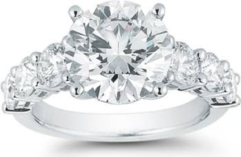 This classic and stunning women's engagement ring features a certified 3ct center diamond and six round cut accent diamonds. All stones are set in solid 14k gold.
