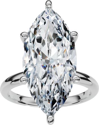 This stunning women's engagement ring features a larger 6 carat marquise cut certified lab grown diamond. The diamond is six prong set in solid polished mounting.
