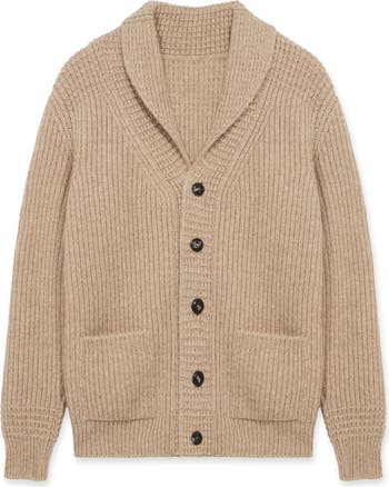 The Chad Cardigan, a Fortela classic, crafted in Peru, channels timeless style. This shawl collar cardigan features a soft, English rib knit from recycled alpaca, ideal over shirts and tees. With its regular fit, rib-knit cuffs and two front patch pockets, it’s a testament to Fortela's blend of tradition and modern sophistication.
