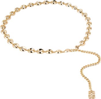 Round-link chain belt with adjustable lobster clasp decorated with a signature charm.