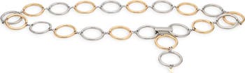 A mixed-metal design and high-shine finish bring distinct elements to an opulent chain-link belt that adjusts for versatile styling.