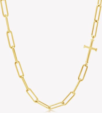 18k generously gold plated over sterling silver cross necklace seamlessly paired with a bold paperclip style fully chain. Fully adjustable 19.5 inch (50cm) chain. Boldly convey your faith with our Chain Breaker Necklace, inspired by Galatians 5:1. The epitome of meaning and style. The bold paperclip links transition seamlessly into the classic Rizen Cross pendant. An artful testament of freedom in Christ.