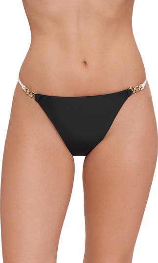A gleaming chain brings beachy texture to these flirty bikini bottoms that are ready for some fun-in-the-sun.