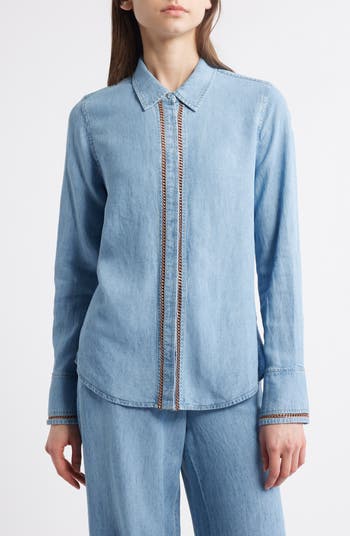 KOBI HALPERIN Chain Trim Denim Button-Up Shirt