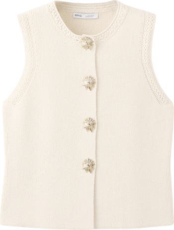 Shining starbursts button a whimsical sweater vest knit from a cool cotton-forward blend.