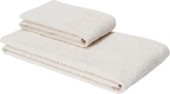 Chalk 2-piece Bath Towel Set In Cotton Terry With Zigzag Pattern