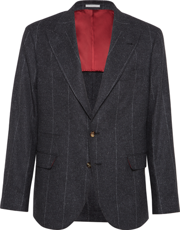 The chalk stripe flannel combines the comfort, warmth and lightness of natural fibers with a classic pattern inspired by the world of tailoring. The crafting of the knop yarn enriches the material’s texture with the characteristic mottled color. The lining completes the garment and makes wearing comfortable.