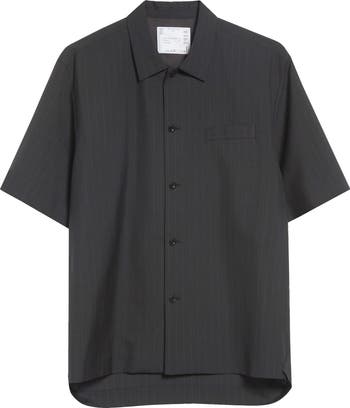 This relaxed-fit, boxy pinstripe shirt is cut from a lightweight blend with a good amount of wool, while the shape is controlled at the hem by the designer's signature forward-slant side seams.