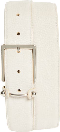 This sleek belt in creamy calfskin leather with the Chambeliss line's signature piercing-bar hardware plays an essential supporting role in pulling together your look.